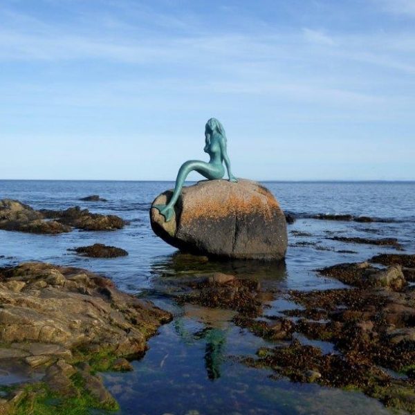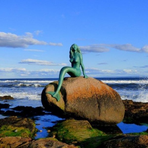 The Mermaid of the North sits upon a rock- named ‘Clach Dubh’ (black rock in Gaelic) in the Seaboard village of Balintore.